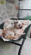 Sim, faz hoje precisamente uma semana que o nosso querido velhinho partiu para o “Céu de Cão”, vítima de uma embolia pulmonar… Uma semana que, por vários outros motivos, foi muito complicada para a nossa Equipa, e não nos permitiu dispor, mais cedo, de um momento para prestar o nosso sentido tributo ao MIKINHO. Este velhinho doce estava connosco desde 2013, tendo sido acolhido por se encontrar em péssimas condições, e, apesar de já idoso e cego, totalmente negligenciado. Rapidamente o MIKINHO se adaptou e encontrou o seu lugar, onde sentia conforto e gostava dos “cãopanheiros”, aqui no P.T.N. Apesar da sua cegueira, orientava-se muito bem, e adorou quando o transferimos para o “Palace Rodinhas”, onde se tornou, até, num velhote brincalhão e “festeiro”, embora apreciador dos seus momentos de “relax”, como aqui nesta imagem, do seu poiso preferido durante o dia. À medida que a idade ia avançando, contudo, iam surgindo problemas de saúde, especialmente do foro respiratório, e o MIKINHO estava a fazer um tratamento diário, com medicação destinada a proporcionar-lhe maior conforto e maior facilidade em respirar. Acreditamos, e o Veterinário que o acompanhou é da mesma opinião, que o intenso calor que se fez sentir nas anteriores semanas de Julho, e apesar de tudo termos feito para o manter, e aos “cãopanheiros”, sempre fresquinhos e com boa ventilação, em muito terá contribuído para o agravamento da congestão pulmonar. E, apesar da intervenção imediata do Veterinário quando surgiram os primeiros sinais de falência respiratória aguda, o nosso MIKINHO não resistiu, tendo sido confirmada a embolia pulmonar aguda. Queremos acreditar que o nosso querido velhinho não chegou a sofrer, pois perdeu a consciência, e, como sempre, estivemos com ele, acarinhando-o e mimando-o, até ao desfecho… que, misericordiosamente, não tardou. O MIKINHO esteve connosco durante sete anos, e estimamos que teria já cerca de 9 ou 10 quando aqui chegou. Teve, pois, uma vida longa, e, pelo menos durante a parte dela que passou aqui no P.T.N., teve conforto, boa comidinha, cuidados veterinários, cuidados diários prestados com esmero, e muito, muito carinho… muito, muito amor. Era muito pequenino, de tamanho, mas tinha um grande coração e um grande carisma, e os seus “cãopanheiros” sentem a sua falta, tal como nós. Mas queremos lembrá-lo nos seus “Agoras Felizes”, nas suas manhãs de saltinhos no pátio, atrás dos biscoitinhos, na sua independência dos momentos em que, quando já não lhe apetecia mais brincar ou passear, lá ia, calmamente, para a marquise, e ficava assim, muito bem instalado na sua caminha preferida, a descansar. Até sempre, querido MIKINHO… o teu lugar nunca ficará vazio, porque continuas aninhado, com a tua doçura, no nosso coração.